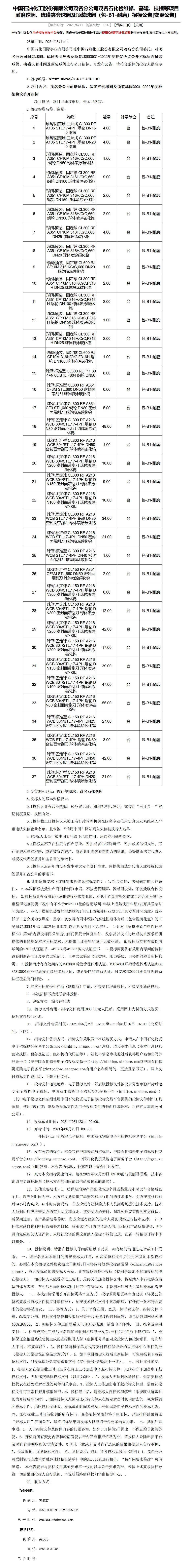 本公告在中國采購與招標網、中國石化物資電子招標投標交易平臺(http://bidding.sinopec.com)、中國石化物資采購電子商務平臺(http://ec.sinopec.com)同時發布,本公告的修改、補充在以上媒介同時發布。