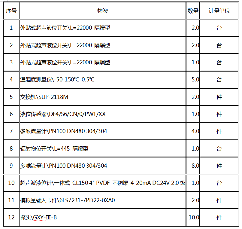 2.招標物資名稱、數(shù)量: