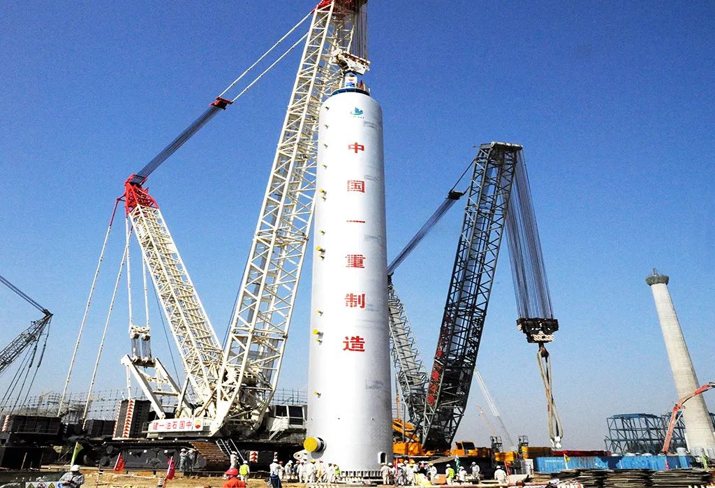 ◆2月21日四聯合柴油加氫裝置II關鍵設備,總重量1200噸的加氫反應器吊裝就位。標志著四聯合現場施工由土建施工進入了設備安裝階段。