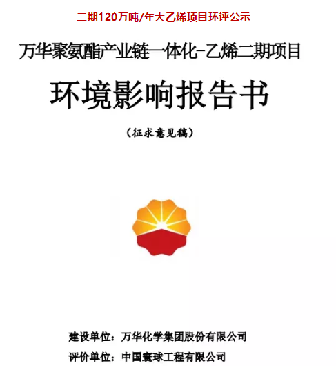 11月9日,《萬華化學(xué)集團股份有限公司聚氨酯產(chǎn)業(yè)鏈一體化-乙烯二期項目環(huán)境影響報告書》征求意見稿已形成,根據(jù)要求進行信息公開,并征求意見。
