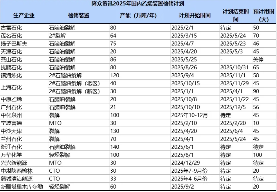 2025年2月5日,中國甲醇裝置檢修/減產統計日損失量5560噸。暫無恢復、新增檢修及計劃檢修裝置。