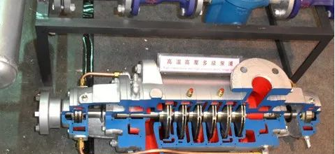 安裝時將平衡鼓、軸套和所有葉輪向右推,至首級葉輪、軸套分別靠到軸肩上,測量軸套與平衡鼓間隙,使其≥0.5,若間隙太小,修整平衡鼓,使間隙達到要求。然后將帶有首級葉輪的軸裝入入口殼體上,逐級把葉輪和帶有導葉的中段殼體裝到軸上直到出口段,用螺桿固定泵部件,裝上平衡裝置,密封及軸承部件,確定轉子正確的中間位置,調整好圓錐軸承的軸向間隙0.04-0.06mm.