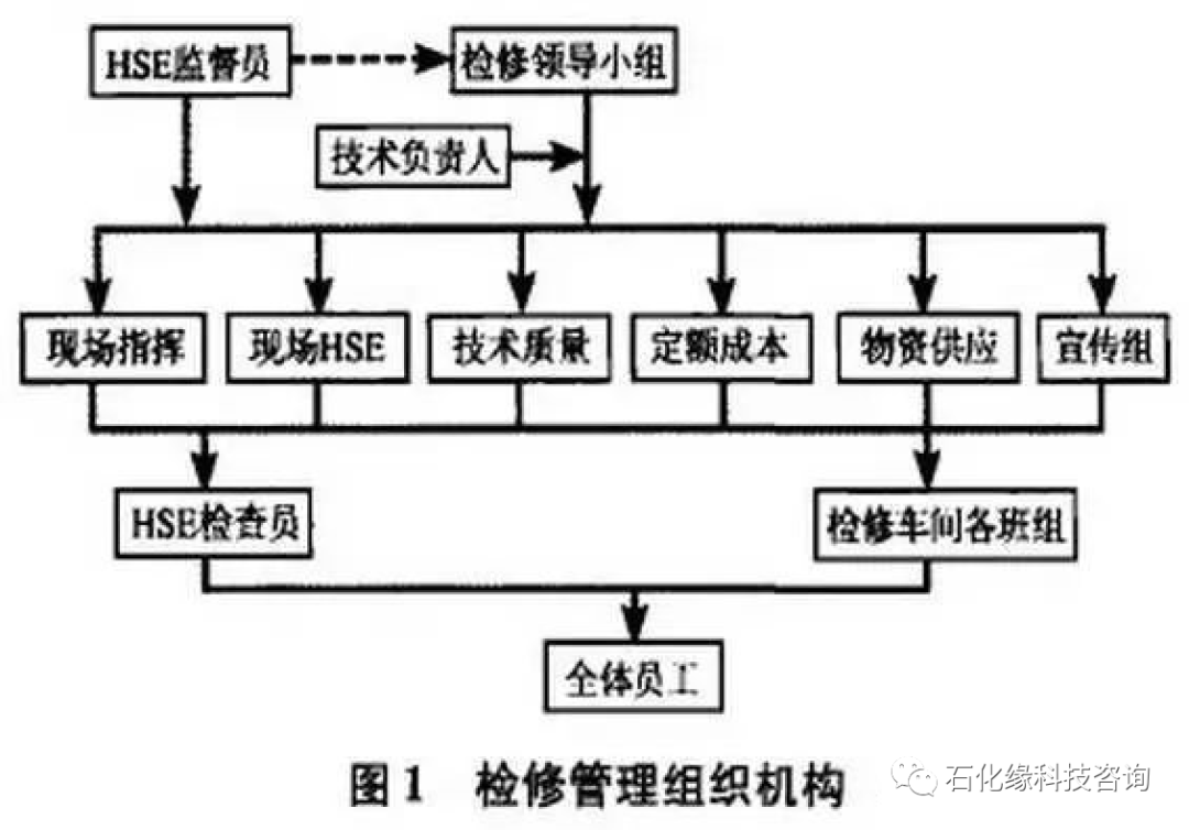 成立檢修領導小組,對檢修實行統一領導、統一指揮。其成員要明確分工,各負其責。檢修領導小組分設六個專業組。各專業組在裝置檢修一線作好協調、配合、監督和服務工作。檢修HSE組作為檢修領導小組的重要成員,對檢修全過程的安全工作進行部署、檢查、總結、評比。HSE監督員對檢修全過程中各環節的HSE管理負全面監督檢查責任。組織現場安全檢查,發現安全隱患應立即向領導小組匯報,并負責制定整改方案,并監督現場整改。對車間、班組以及零散的作業小組,都應指派HSE檢查員負責現場作業的安全把關,使檢修安全時時處于可控狀態。