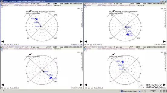 硬件系統方面,針對不同等級的機泵分別引進世界技術領先的在線診斷系統及離線診斷系統:AA級設備建立在線故障診斷系統,采用GE集團的system1系統實施監控,對現場振動測點的模擬量信號進行數學模型計算并集成設備工藝參數及控制參數,在系統中記錄、繪制振動頻譜及各參數趨勢圖,包括啟停機瀑布圖、Bode圖、軸心軌跡、軸心位置、頻譜圖等振動分析圖譜,