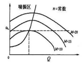 如圖所示,離心壓縮機在相同轉速、不同相對分子質量下恒壓進行的曲線,從曲線中可以看出,在恒壓運行條件下,當相對分子質量M=20的氣體發生喘振時,相對分子質量為M=25和M=28的氣體運行點還遠離喘振區。因此,在恒壓運行工況下,相對分子質量越小,越容易發生喘振。