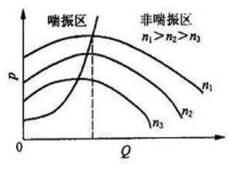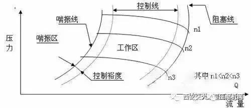 每臺離心式壓縮機在不同轉速n下都對應著一條出口壓力P與流量Q之間的曲線,如圖所示。
