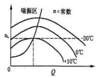 如圖所示,恒壓恒轉速下進行的離心式壓縮機在不同入口氣體溫度時的進行曲線,從曲線上可以看出在恒壓運行工況下,氣體入口溫度越高,越容易發生喘振。因此,對同一臺離心式壓縮機來說,夏季比冬季更容易發生喘振。