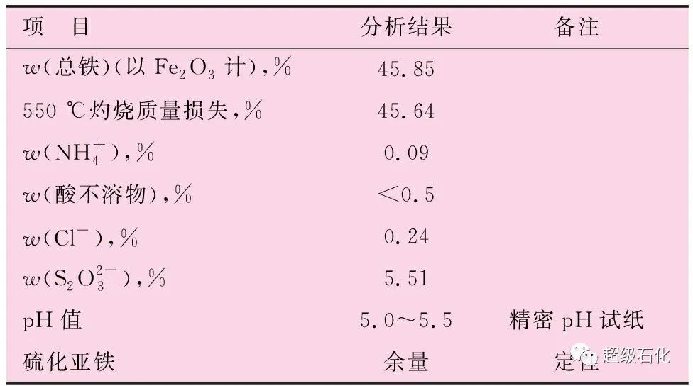 所取垢樣質(zhì)量較輕,呈黑色、塊狀,少部分溶于水。由表3可以看出:垢樣主要物相為有機(jī)物、鐵的氧化物、硫代硫酸鹽和硫化亞鐵(定性有),其次還有少量氯鹽、銨鹽和酸不溶物等物質(zhì)。由此可判斷減三線洗滌油管道的腐蝕屬于高溫硫腐蝕,高溫硫直接與管道發(fā)生反應(yīng)生成硫化亞鐵,在管壁形成保護(hù)膜。但垢樣中存在少量的銨和較多的氯離子,使得硫化亞鐵膜不致密,造成管壁產(chǎn)生垢下腐蝕。