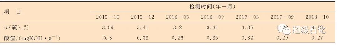 該煉油廠實(shí)驗(yàn)室2015—2018年生產(chǎn)周期期間對(duì)減三線硫含量及酸值進(jìn)行了檢測(cè),部分檢測(cè)結(jié)果見表4。