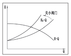 在裝置特性曲線HZ-Q不變的情況下,泵的運行工況點在M點,流量為QM,揚程為HM。當期望揚程增加到HA時,泵的特性曲線上移成H1-Q1時,工況點也從M點變成B點,此時工況點流量變成QB,揚程變成HB,此時流量和揚程分別增加了ΔQ1和ΔH1。泵的實際運行工況點偏移到大流量點,泵內流速增加,流阻損失也隨之增加,造成泵體內部流動不穩定,容易引起進口管路中的壓力脈動,引發振動。此外,還可能發生電機超載,導致泵壽命縮短。