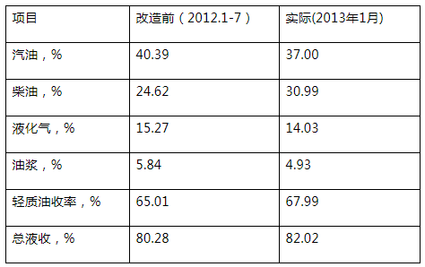 從產(chǎn)品分布來看,改造后輕質(zhì)油收率和總液收都比改造前有所增加,特別是柴油收率有明顯的增加。