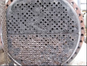 從流程上看,油漿系統(tǒng)流程長、壓降大,對長周期會產(chǎn)生不利影響,主要表現(xiàn)在油漿換熱器由于結焦必須頻繁拆修,操作參數(shù)不易控制等。減緩結焦是實現(xiàn)油漿系統(tǒng)長周期運行的主要目標。圖4為E-211結焦情況。