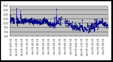 隨著催化原料性質(zhì)改善及操作優(yōu)化措施的實施,穩(wěn)定汽油質(zhì)量大幅改善,為全廠汽油生產(chǎn)創(chuàng)造了有利條件。數(shù)據(jù)顯示,自2012年12月以來,催化穩(wěn)定汽油硫含量呈現(xiàn)逐漸下降的趨勢,2013年8月以后,硫含量下降趨勢更加明顯,基本穩(wěn)定在700~900ppm。催化穩(wěn)定汽