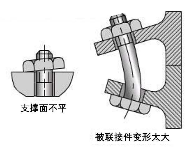 由于設計、制造或安裝上的疏忽,有可能使螺栓受到附加彎曲應力(圖 2), 這對螺栓疲勞強度的影響很大,應設法避免。